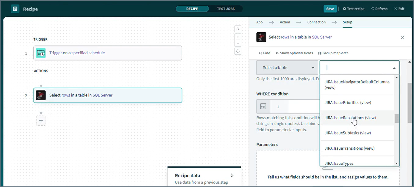 To establish a connection from Workato to the Connect AI Virtual SQL Server API, follow these steps.In Connect to SQL Server, enter the connection name and the following connection settings.